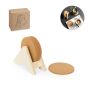 10 onderzetters van RPET vilt in een bamboe houder. Uw logo wordt op de houder gegraveerd.